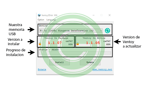 MUY IMPORTANTE: Si bien Ventoy nos envía un aviso, por las dudas lo reiteramos por acá también. Este proceso elimina todo el contenido del pendrive. Por lo cual, si tienen información que no quieren perder, tendrán que guardarla temporalmente en otro lugar.